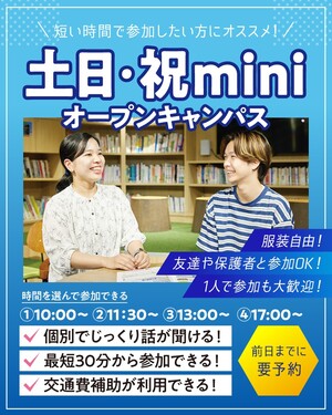 【来校型】土日・祝miniオープンキャンパス(高校生・再進学・留学生の方にオススメ)